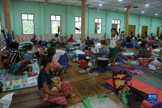 這是8月12日拍攝的緬甸勃固鎮(zhèn)洪災(zāi)區(qū)。新華社發(fā)(苗覺梭攝)