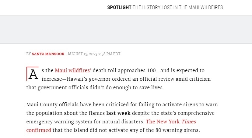 據(jù)悉,夏威夷毛伊島部署有80個警報器,但是在此次野火來襲過程中,警報器并未響起。安達(dá)亞16日曾表示,他并不后悔沒有拉響警報器,因為警報器通常是用來警示海嘯的,反而可能導(dǎo)致很多民眾逃向內(nèi)陸地勢較高處,從而進入火海。這一表態(tài)激起了廣泛爭議和批評。