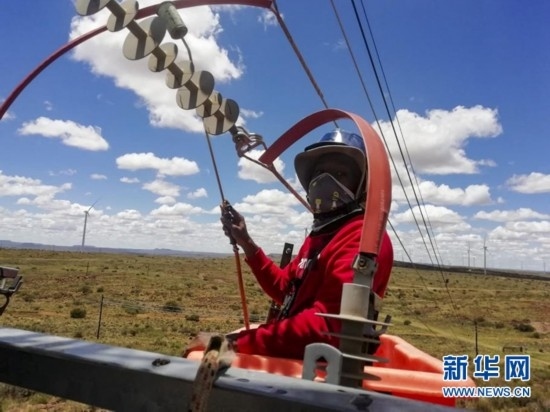 新華網(wǎng)約翰內(nèi)斯堡8月21日電(賈睿琪)在南非北開普省德阿鎮(zhèn)附近的山地上,一座座白色風(fēng)機(jī)昂然佇立。勁風(fēng)吹過,風(fēng)機(jī)葉片徐徐轉(zhuǎn)動(dòng),這是中國(guó)國(guó)家能源集團(tuán)龍?jiān)措娏δ戏枪具\(yùn)營(yíng)的德阿風(fēng)電項(xiàng)目風(fēng)機(jī)。