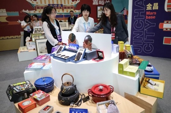 敦煌壁畫盲盒、幽幽鹿鳴小夜燈、三兔共悅彩繪果盤……6日,在文博會上的酒泉文創(chuàng)產(chǎn)品展臺,酒泉市文體廣電和旅游局工作人員王瑩說,“開館不到2小時就賣了近3000元,來購買文創(chuàng)的還有不少外國人。去年全年敦煌文創(chuàng)銷售額達(dá)4000多萬元?!?/p>