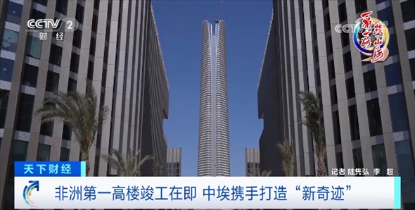 總臺記者 陸雋弘:這片已然拔地而起的現(xiàn)代化新城,就是在建中的埃及新行政首都中央商務(wù)區(qū)。其中最高大顯眼的這座大樓,便是高達(dá)385.8米的非洲第一高樓“標(biāo)志塔”。中央商務(wù)區(qū)項(xiàng)目的全部20棟建筑均已完成主體結(jié)構(gòu)及外裝幕墻的施工,整個(gè)項(xiàng)目正處于竣工前的最后沖刺階段。