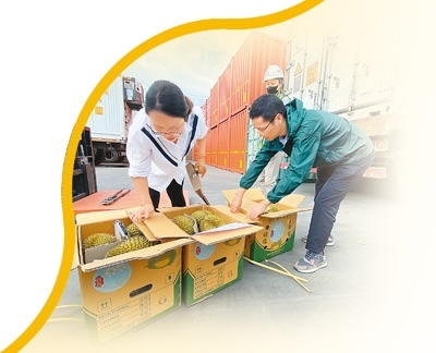 “針對水果等生鮮農(nóng)產(chǎn)品特點,我們采取7×24小時預(yù)約通關(guān),設(shè)置農(nóng)食產(chǎn)品專用窗口,優(yōu)先辦理鮮活易腐農(nóng)產(chǎn)品接單、放行業(yè)務(wù),并采取即到即檢即放模式,確保進口水果通關(guān)零延遲?!臂屡D海關(guān)關(guān)長韓斌說。
