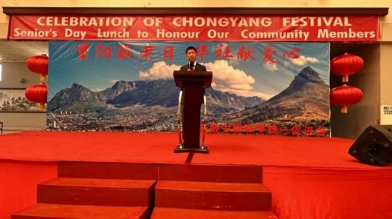 湯長安在活動(dòng)上發(fā)表致辭說,此次舉辦的慶祝重陽節(jié)活動(dòng),不僅傳承和弘揚(yáng)了尊老敬老的傳統(tǒng)中華美德,同時(shí)展現(xiàn)了開普敦僑界團(tuán)結(jié)和諧包容的良好局面,更為中南民間交流提供了重要平臺(tái)。