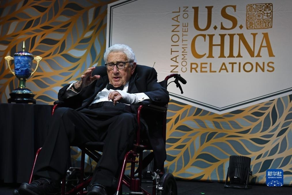 10月24日,美國前國務卿基辛格(中)出席在紐約舉行的美中關系全國委員會年度頒獎晚宴。新華社記者 李睿 攝