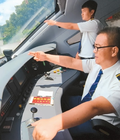 中方司機(jī)與老方副司機(jī)一同值乘“瀾滄號”國際旅客列車。