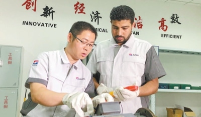 中國師傅們的悉心教導(dǎo),讓埃方員工對中國感情愈加深厚。烏薩馬表示,自己能從零開始當(dāng)上部門副經(jīng)理,特別要感謝他的中國師傅沈林洪?!皫煾翟诠ぷ魃鲜职咽謧魇诩寄?,讓我的專業(yè)技術(shù)水平逐漸提升。他在生活上也對我百般照顧,助我快速成長。”烏薩馬說,雖然師傅現(xiàn)在已經(jīng)回國了,但他們還一直保持著聯(lián)系,“每逢春節(jié)、開齋節(jié)等兩國的重要節(jié)日,我們都會互相問候?!?/p>