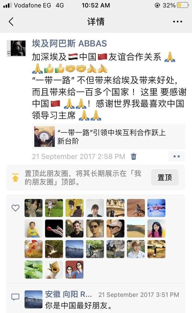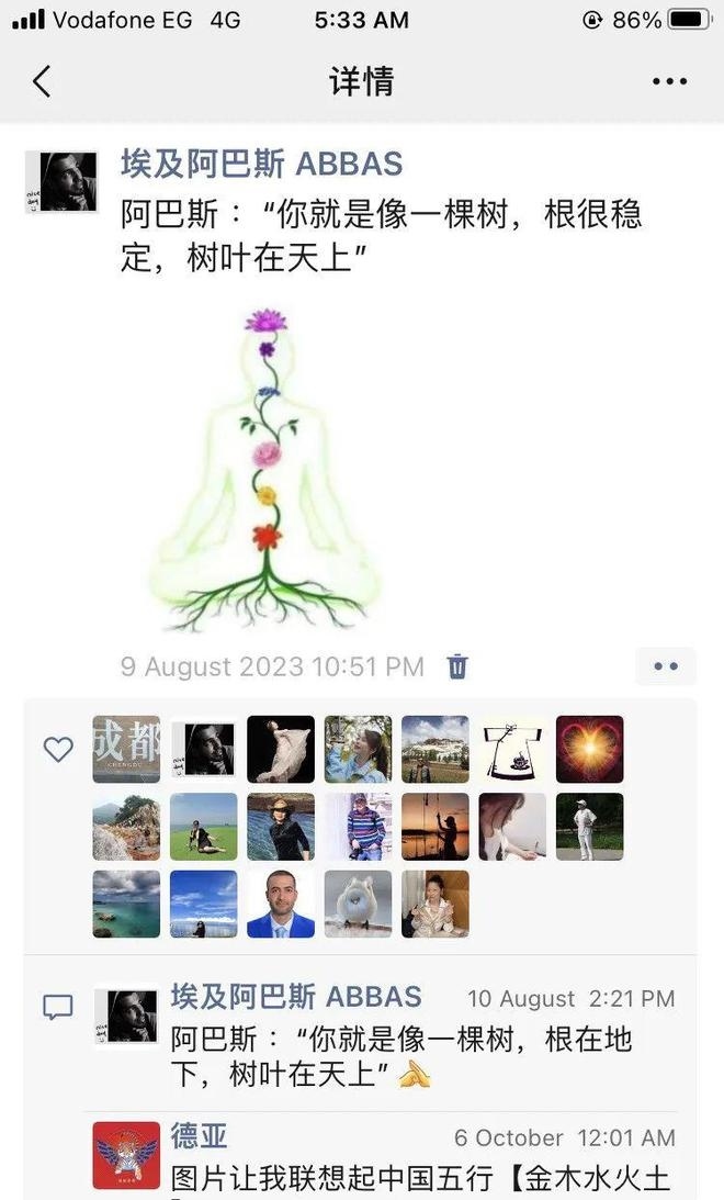 “你就是像一棵樹(shù),根很穩(wěn)定,樹(shù)葉在天上?!边@是阿巴斯微信朋友圈里的一句話(huà),也是他生活和工作的寫(xiě)照。那深入泥土的遒勁的“根”,是他對(duì)中文和中國(guó)文化的不斷深入學(xué)習(xí),是不斷發(fā)展的中埃友誼,是不斷走深走實(shí)的共建“一帶一路”倡議;那姿態(tài)昂揚(yáng)、伸向天空的輕盈的“葉”,是他由“小我”走向“大我”穩(wěn)步實(shí)現(xiàn)的夢(mèng)想,是他對(duì)更美好明天的熱切期待。