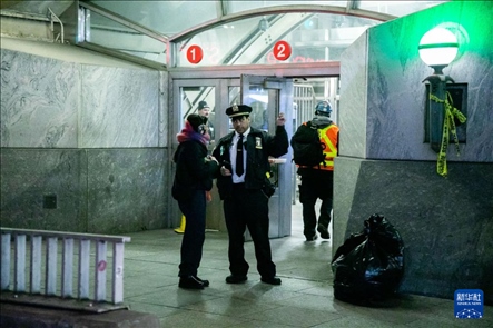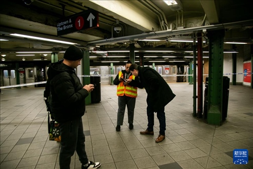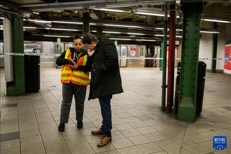 1月4日,在美國紐約,工作人員在地鐵站臺為乘客提供幫助。新華社發(fā)(郭克攝)