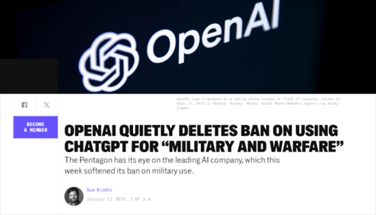 美媒:OpenAI刪除了禁止他們的技術(shù)被用于軍事用途的條款