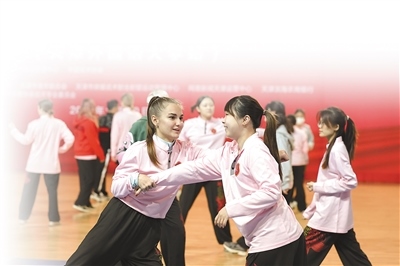 在2023年11月舉行的2023年在華留學(xué)生武術(shù)訓(xùn)練營(yíng)(天津外國(guó)語(yǔ)大學(xué)站)活動(dòng)上,外國(guó)留學(xué)生學(xué)習(xí)中國(guó)傳統(tǒng)武術(shù)。劉東岳攝(影像中國(guó))