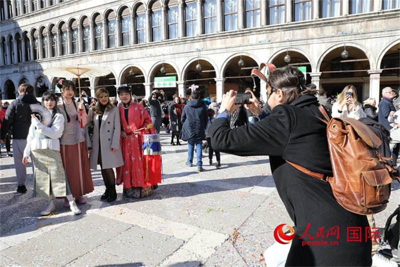 人民網威尼斯2月14日電 (記者謝亞宏)2月13日,為期兩周的年度威尼斯狂歡節(jié)迎來最后一天,期間舉行了威尼斯大學孔子學院與蘇州絲綢博物館合作主辦的漢服巡游活動。