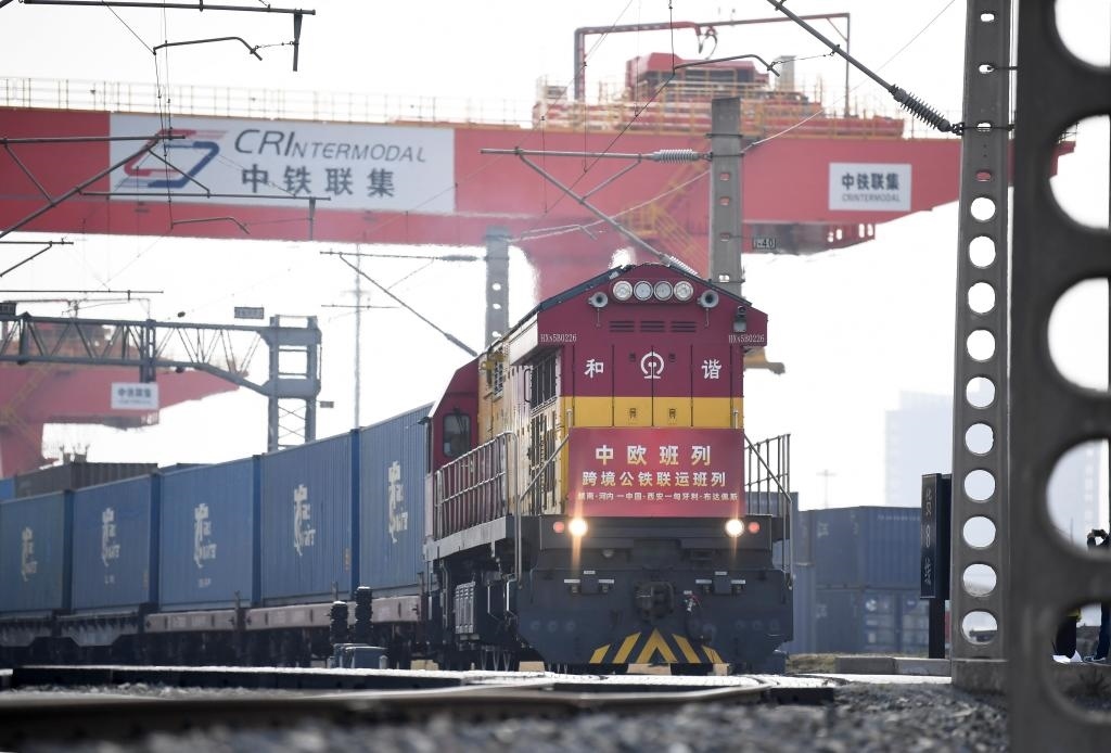 ?3月7日,中歐班列(越南·河內——中國·西安——匈牙利·布達佩斯)跨境公鐵聯(lián)運班列從西安國際港站駛出。新華社記者李一博攝