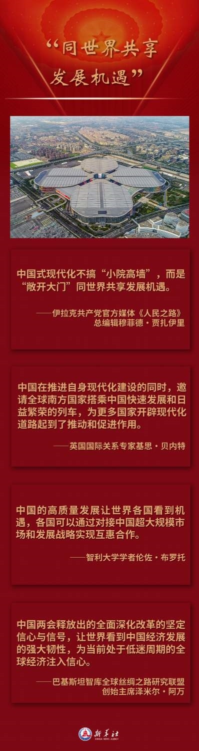 如何推動中國式現(xiàn)代化建設(shè),是國際社會長期關(guān)注中國的一大焦點(diǎn)。透過中國全國兩會窗口,國際輿論和海外人士看到,在中國式現(xiàn)代化的道路指引下,中國經(jīng)濟(jì)社會發(fā)展取得令人矚目的成績,給世界各國帶來合作共贏的新機(jī)遇,中國式現(xiàn)代化為人類實(shí)現(xiàn)現(xiàn)代化提供了新選擇,為發(fā)展中國家拓展現(xiàn)代化路徑提供了有益啟示。