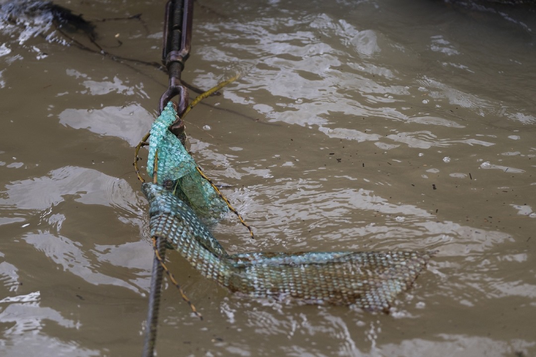 當?shù)貢r間2024年2月14日,法國巴黎,塞納河岸邊被丟棄的繩子和垃圾。