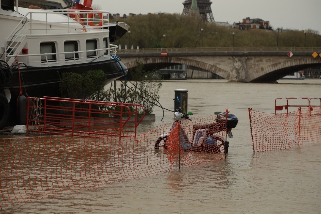 當?shù)貢r間2024年4月6日,法國巴黎,塞納河沿岸被洪水淹沒。