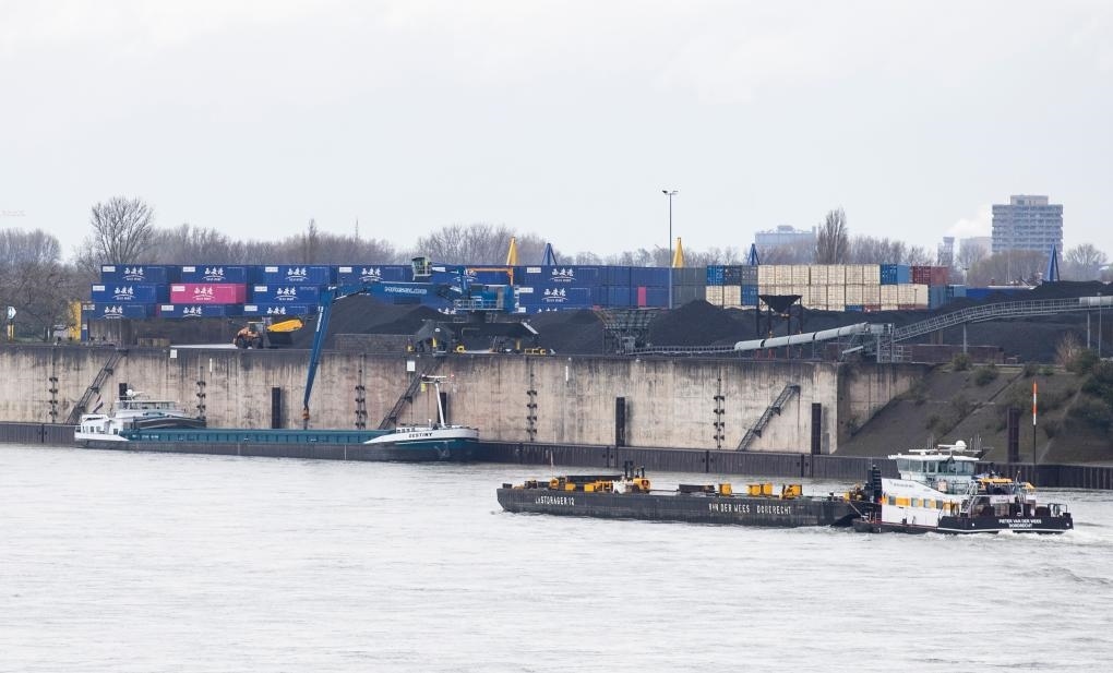 貨輪排隊(duì)停靠,火車?guó)Q笛駛?cè)胴涍\(yùn)場(chǎng)站,卡車搭載著印有“渝新歐”“義新歐”“西安港”等字樣的集裝箱往來(lái)奔馳……這座萊茵河畔的港口,一派繁忙景象。