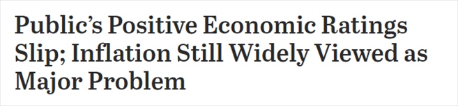 根據(jù)調(diào)查,現(xiàn)如今,只有23%的美國成年人認(rèn)為經(jīng)濟狀況良好,低于一月份的28%。從兩黨來看,37%的民主黨人以及傾向于民主黨的人對經(jīng)濟持積極態(tài)度,僅10%的共和黨人及支持共和黨的人持積極態(tài)度。