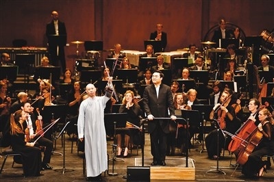 2005年,果敢在巴黎議會(huì)宮同巴黎歌劇院交響樂(lè)隊(duì)合作演出。頭頂是聚光燈,身后是150人組成的交響樂(lè)隊(duì),二胡的兩根弦拉響,身穿白色長(zhǎng)袍、剃著光頭的他一下被人們記住。