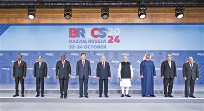 當地時間10月23日上午,金磚國家領導人第十六次會晤在喀山會展中心舉行。俄羅斯總統(tǒng)普京主持會晤。中國國家主席習近平、巴西總統(tǒng)盧拉(線上)、埃及總統(tǒng)塞西、埃塞俄比亞總理阿比、印度總理莫迪、伊朗總統(tǒng)佩澤希齊揚、南非總統(tǒng)拉馬福薩、阿聯(lián)酋總統(tǒng)穆罕默德等出席。這是會晤期間,金磚國家領導人集體合影。新華社記者 李學仁攝