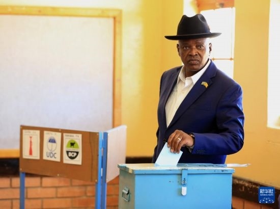 10月30日,博茨瓦納現(xiàn)任總統(tǒng)、民主黨候選人馬西西在南部區(qū)莫舒帕村的一處投票站投票。新華社發(fā)(恩古貝瓦納攝)