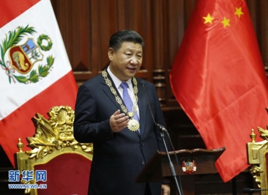 2016年11月21日,國家主席習近平在秘魯國會發(fā)表題為《同舟共濟、揚帆遠航,共創(chuàng)中拉關系美好未來》的重要演講。新華社記者 鞠 鵬攝
