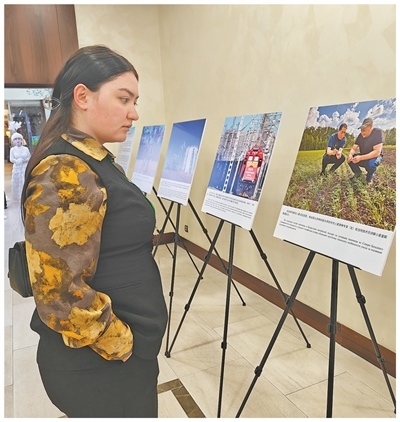 在2025中國—中亞媒體合作論壇上,外方嘉賓正在認真觀看中國—中亞合作圖片。