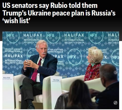 另據(jù)美國(guó)廣播公司(ABC)報(bào)道,幾名匿名美國(guó)官員透露,魯比奧在電話中告知他們,這項(xiàng)“28點(diǎn)”和平計(jì)劃并非由美國(guó)制定。