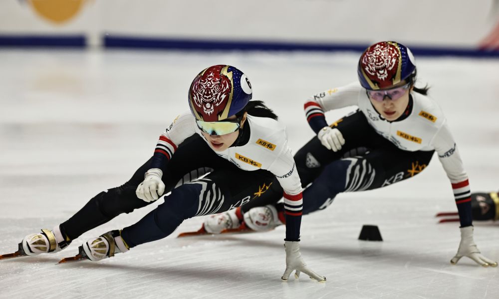 資料圖:韓國選手金吉莉(左)、崔敏靜在2025-2026賽季短道速滑世界巡回賽暨米蘭冬奧會資格賽第三站女子1500米A組決賽中。新華社記者 高靜 攝