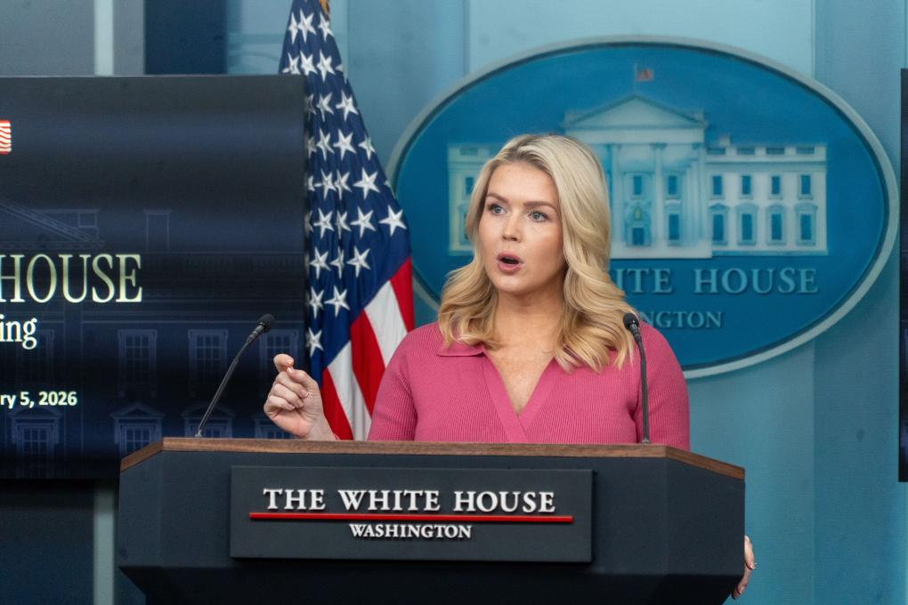 2月5日,在美國首都華盛頓,白宮新聞秘書萊維特出席記者會(huì)。新華社發(fā)(李源清攝)