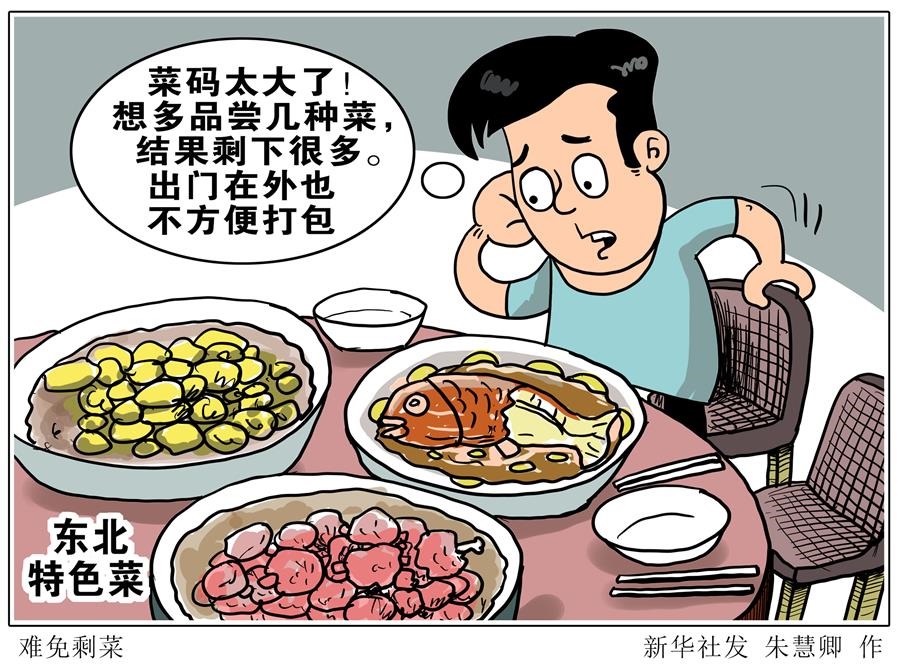 前不久從廣東來吉林旅游的張文奇體驗(yàn)了鍋包肉、鐵鍋燉魚等東北特色菜,喜愛的同時(shí)他忍不住吐槽:“菜碼太大了!想多品嘗幾種菜,結(jié)果剩下很多。出門在外也不方便打包。”
