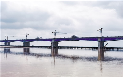 10月5日凌晨,由內(nèi)蒙古高路公司投資,中交二公局承建,包茂高速公路昭君黃河特大橋主橋雙幅順利合龍。昭君黃河特大橋橫亙于黃河,氣勢(shì)宏偉,蔚為壯觀(guān),大橋采用雙向4車(chē)道高速公路標(biāo)準(zhǔn)建設(shè),全長(zhǎng)4300米,分北岸灘橋、北岸跨堤橋、主橋、南岸灘橋、南岸跨堤橋五部分。(王曉博 攝)