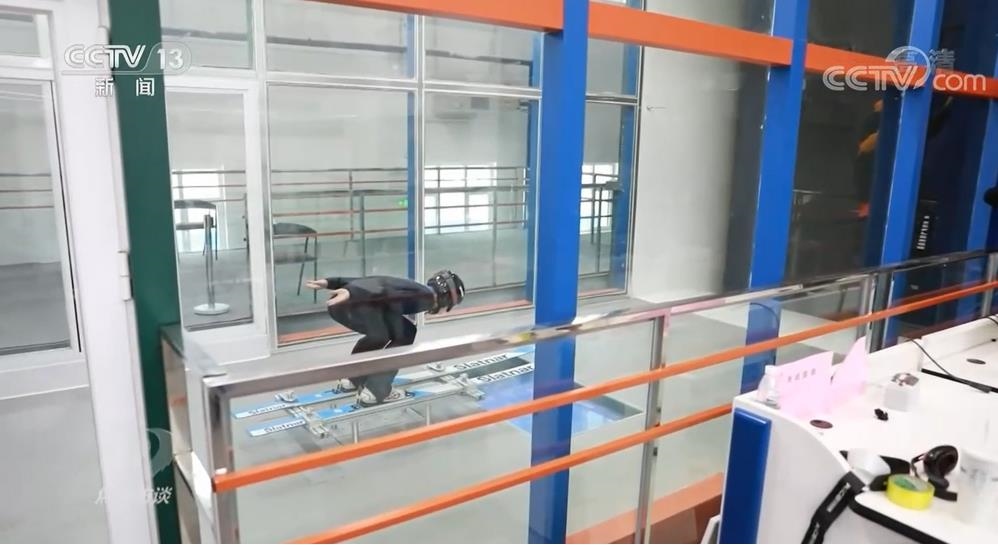 在運(yùn)動(dòng)員訓(xùn)練時(shí),站在場(chǎng)邊的不僅有教練員,還有來(lái)自上海體育學(xué)院的科研團(tuán)隊(duì),他們?cè)谂赃吋茉O(shè)了四臺(tái)攝像機(jī)來(lái)采集運(yùn)動(dòng)員的訓(xùn)練畫(huà)面。由AI無(wú)干擾三維動(dòng)作捕捉、超寬帶精準(zhǔn)定位測(cè)速、高速運(yùn)動(dòng)自動(dòng)跟拍機(jī)器人等多項(xiàng)技術(shù)組成的生物力學(xué)快速反饋系統(tǒng),這可是跳臺(tái)滑雪運(yùn)動(dòng)員們備戰(zhàn)冬奧的訓(xùn)練利器。