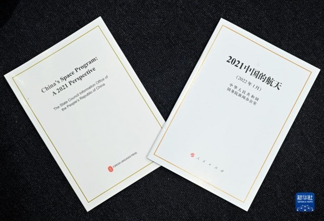 這是1月28日拍攝的《2021中國的航天》白皮書。當日,國務院新聞辦公室發(fā)布《2021中國的航天》白皮書,并在北京舉行新聞發(fā)布會?!⌒氯A社記者 金良快 攝