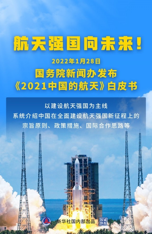 28日上午,國務院新聞辦公室發(fā)布我國第五部航天白皮書——《2021中國的航天》,以建設航天強國為主線,介紹2016年以來中國航天活動主要進展、未來五年主要任務,進一步增進國際社會對中國航天事業(yè)的了解。