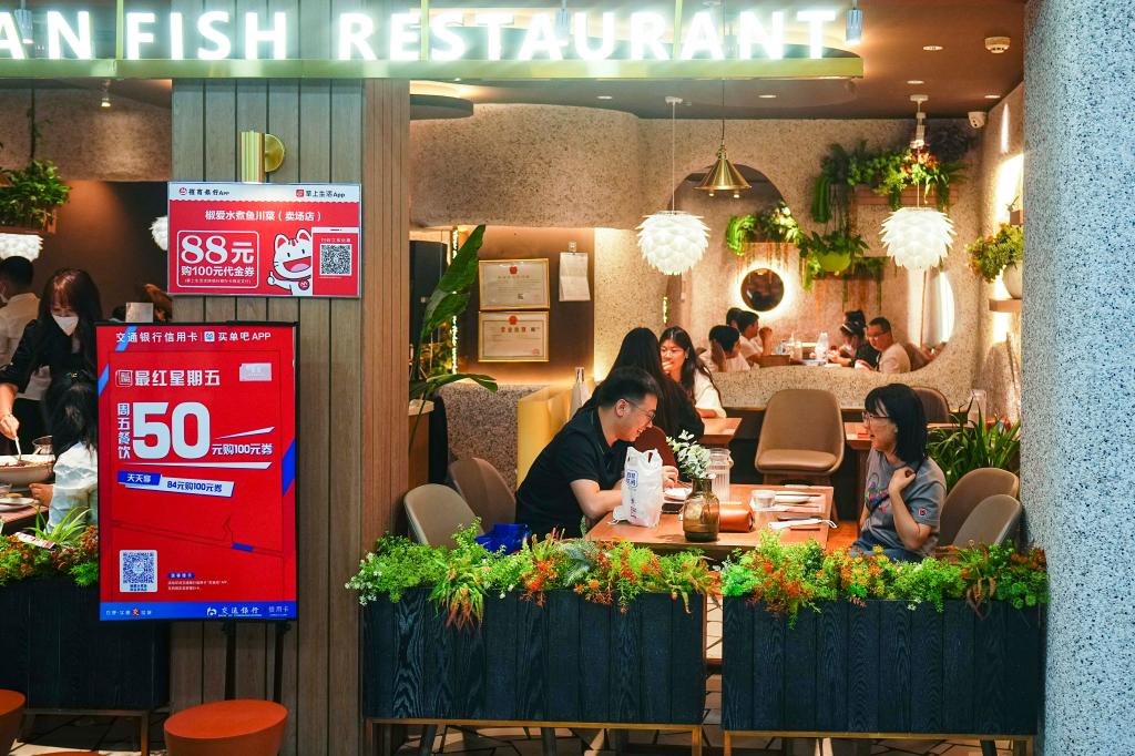 2022年5月28日,市民在長春市一家餐廳內(nèi)用餐。自這一天零時起,長春市各類生產(chǎn)經(jīng)營主體全面恢復(fù)營業(yè)。新華社記者許暢攝