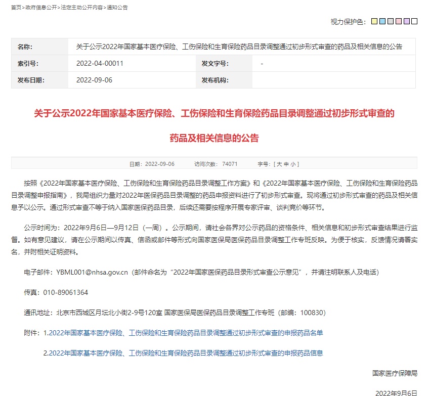 按照《基本醫(yī)療保險(xiǎn)用藥管理暫行辦法》和《2022年國(guó)家基本醫(yī)療保險(xiǎn)、工傷保險(xiǎn)和生育保險(xiǎn)藥品目錄調(diào)整工作方案》(以下簡(jiǎn)稱《工作方案》),醫(yī)保藥品目錄調(diào)整分為企業(yè)申報(bào)、形式審查、專家評(píng)審、談判競(jìng)價(jià)等環(huán)節(jié),形式審查只是其中之一。通過形式審查,表明該藥品有資格進(jìn)入下一步的專家評(píng)審環(huán)節(jié)。只有順利通過目錄調(diào)整的所有環(huán)節(jié),才能最終被納入國(guó)家醫(yī)保藥品目錄。