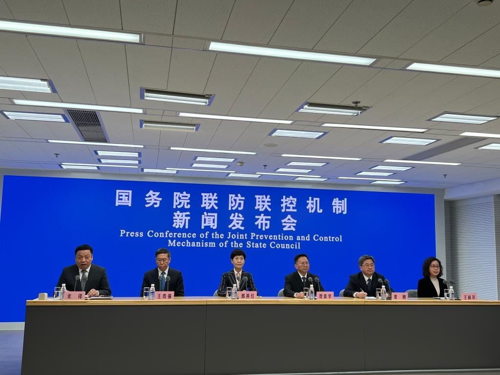 國(guó)務(wù)院聯(lián)防聯(lián)控機(jī)制新聞發(fā)布會(huì)現(xiàn)場(chǎng)。新華社記者 顧天成攝
