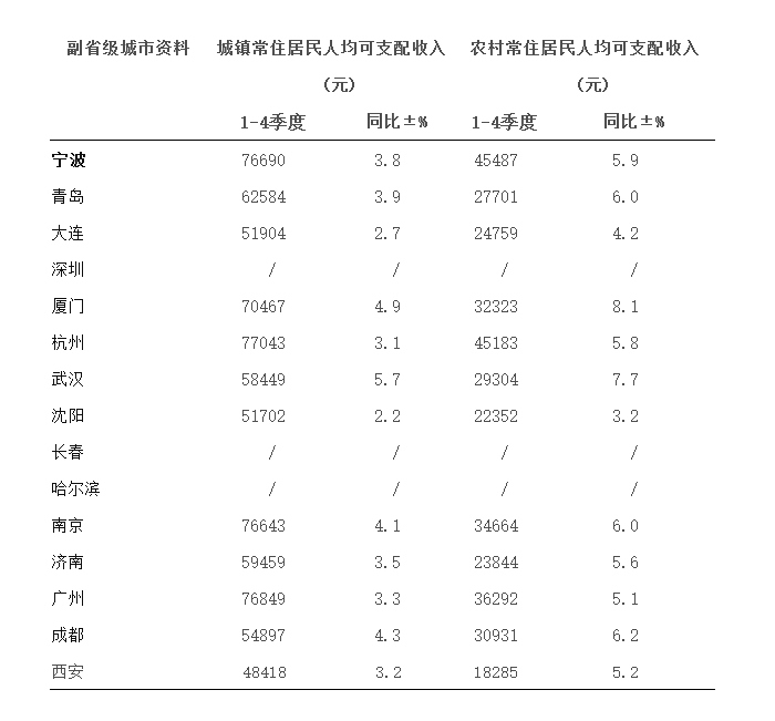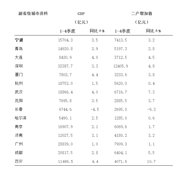 15座副省級城市中,經濟增速“破4”的有西安(4.4%)、廈門(4.4%)、武漢(4.0%)和大連(4.0%),長春增速告負,為-4.5%。