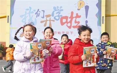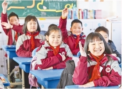 安徽省合肥市蜀山區(qū)北苑村社區(qū)琥珀小學(xué)(東區(qū)),孩子們?cè)谛@里迎接新學(xué)期的到來。陳三虎攝(影像中國(guó))