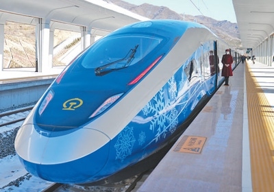 G9981次北京冬奧列車(chē)??吭诰埜哞F崇禮站。 新華社記者 鞠煥宗攝