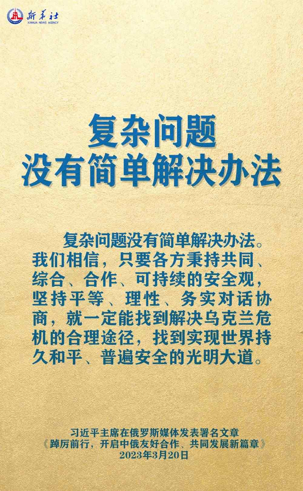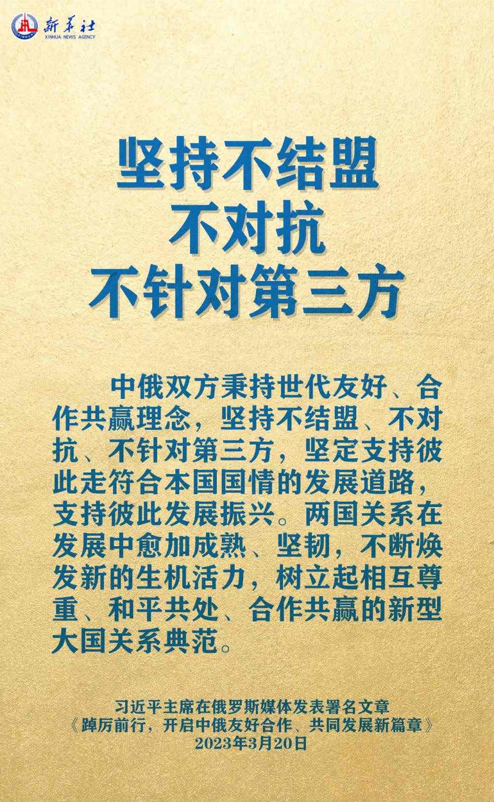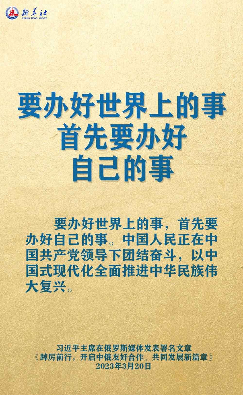 3月20日,在赴莫斯科對(duì)俄羅斯聯(lián)邦進(jìn)行國(guó)事訪問(wèn)之際,國(guó)家主席習(xí)近平在《俄羅斯報(bào)》和俄新社網(wǎng)站發(fā)表題為《踔厲前行,開(kāi)啟中俄友好合作、共同發(fā)展新篇章》的署名文章。