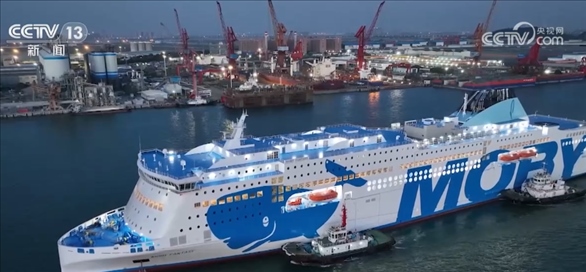 央視網(wǎng)消息:今天(4月14日),我國(guó)專(zhuān)為意大利國(guó)內(nèi)航線(xiàn)自主設(shè)計(jì)建造的客滾船,在位于廣州的中國(guó)船舶集團(tuán)廣船國(guó)際造船廠啟航離港。該船排水量超70000總噸,是目前建成的全球最大噸位客滾船。