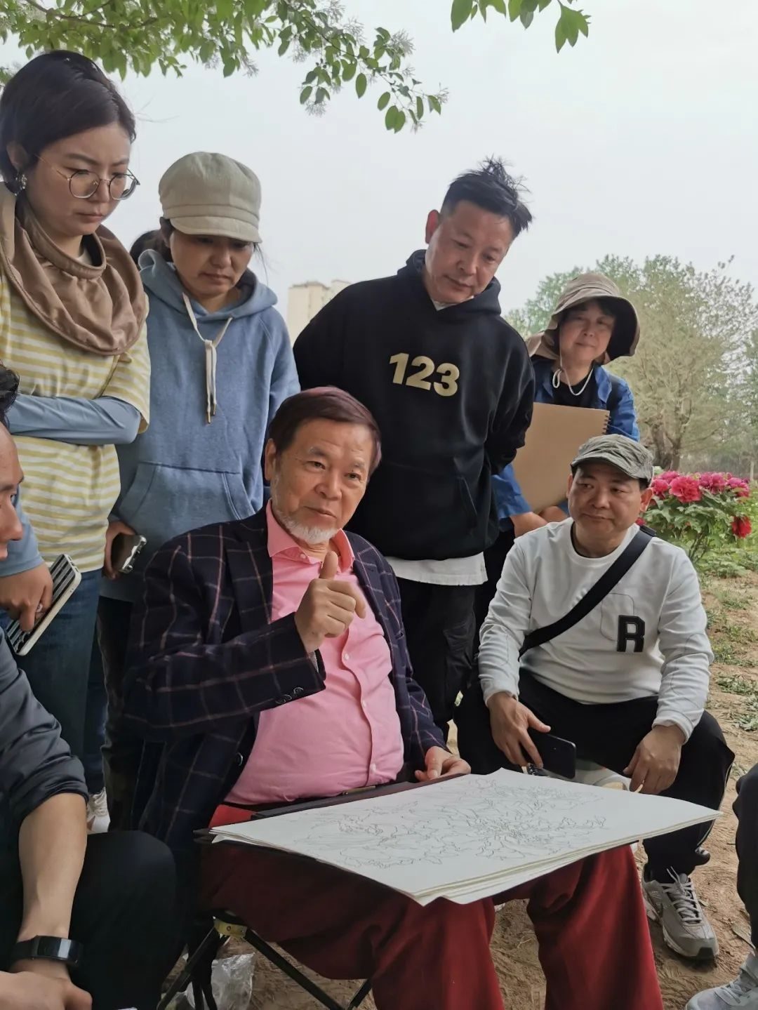 自1975年29歲的何水法先生以赤子之心,首次只身赴菏澤,48年來,為畫牡丹,寫其牡丹之真情、寫其牡丹之風骨,寫其國花繁榮富強之真諦。用何水法先生世紀之初所言:“寫生是畫家與生活的對話”。藝術家也要不斷地站在時代的前列,站在歷史的高位,不斷思索,不斷地刷新繪畫語言。要緊隨時代發(fā)展的需要,不斷突破新題材、突破新意境。因此他今年又親率眾學生第十五次來菏澤深入考察,發(fā)揮示范引領作用,體驗生活、開闊思維,為謳歌人民、謳歌新時代,進行新的藝術創(chuàng)造。
