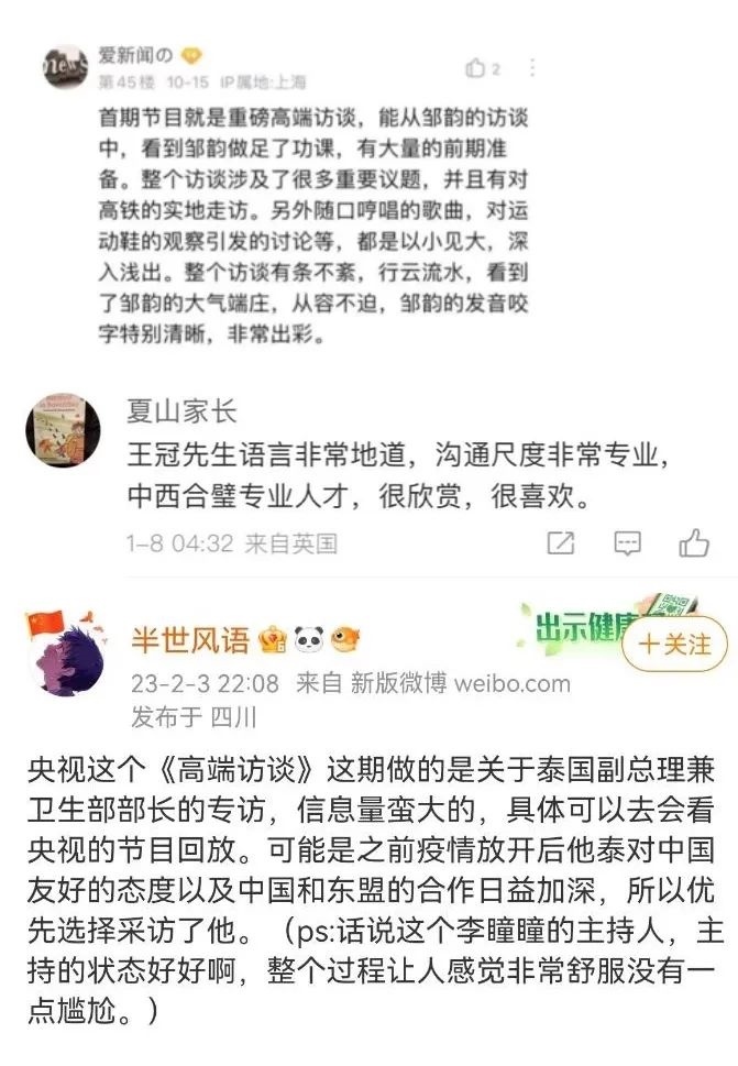 專訪泰國副總理阿努廷時,主持人李曈曈提到,他去機(jī)場迎接中國游客的新聞,在中國社交媒體有4.9億閱讀量。阿努廷感動地說,他當(dāng)時說的都是肺腑之言,沒想到會有這么多人看到這條新聞。