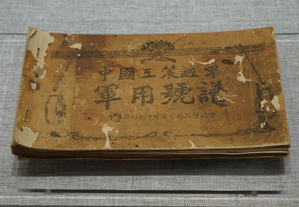 展覽上的寧化縣革命紀(jì)念館藏《中國(guó)工農(nóng)紅軍軍用號(hào)譜》。 新華社記者 劉穎 攝