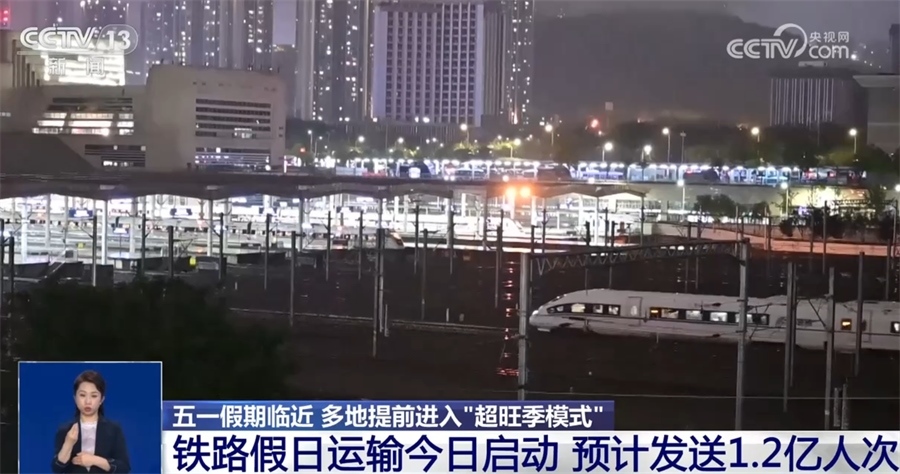 “五一”小長(zhǎng)假期間,全國鐵路預(yù)計(jì)發(fā)送旅客1.2億人次,較2019年同期增長(zhǎng)20%,超歷史同期最高水平,日均發(fā)送旅客1500萬人次。4月29日為客流最高峰日,預(yù)計(jì)發(fā)送旅客超過1900萬人次,超歷史最高峰日10%以上。