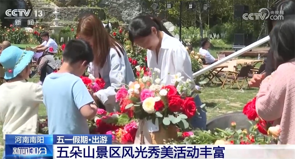 在河南南陽市五朵山景區(qū),“五一”假期吸引了大批游客。今天上午,入園的游客就已經(jīng)超過了1萬人。眼下正是南陽月季博覽會(huì)召開的時(shí)間,五朵山景區(qū)舉辦了一系列的賞花采風(fēng)活動(dòng),景區(qū)內(nèi)還組織了鄉(xiāng)村音樂節(jié)、漢服文化節(jié)和非遺民俗的表演,讓人們在欣賞美麗的自然風(fēng)光之余,感受傳統(tǒng)文化的魅力。