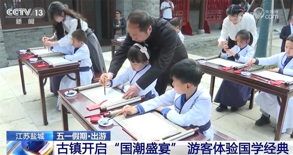 “五一”假期期間,江蘇鹽城鹽南高新區(qū)伍佑珠溪古鎮(zhèn)開啟了一場別開生面的“國潮盛宴”。大家追隨先賢的歷史足跡,在開筆禮、冠禮、六藝國學(xué)講堂等活動(dòng)中體驗(yàn)穿越千年的國學(xué)經(jīng)典。