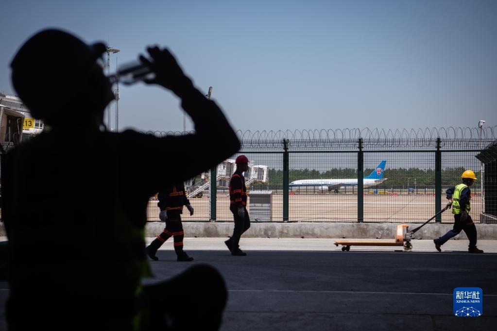 5月1日,在中建三局承建的武漢天河機場T2航站樓改造工程項目工地,工人在作業(yè)間隙休息。   新華社記者 伍志尊 攝