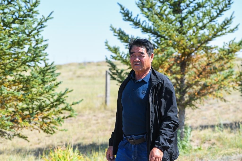 石光銀在自己最早治理的“狼窩沙”林地里。新華社記者 劉瀟 攝